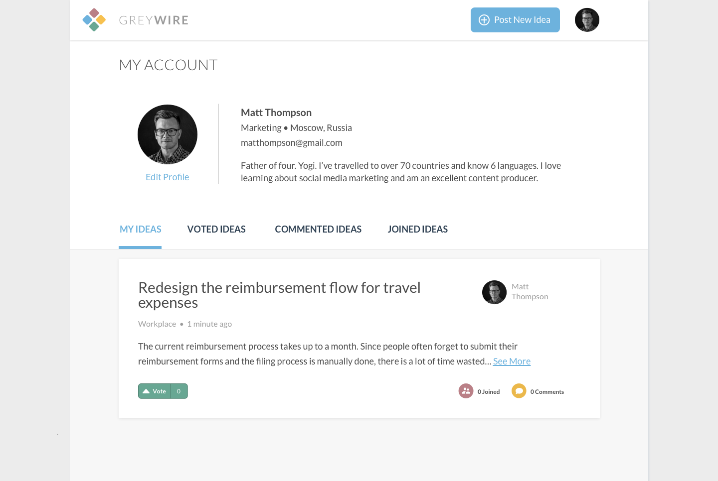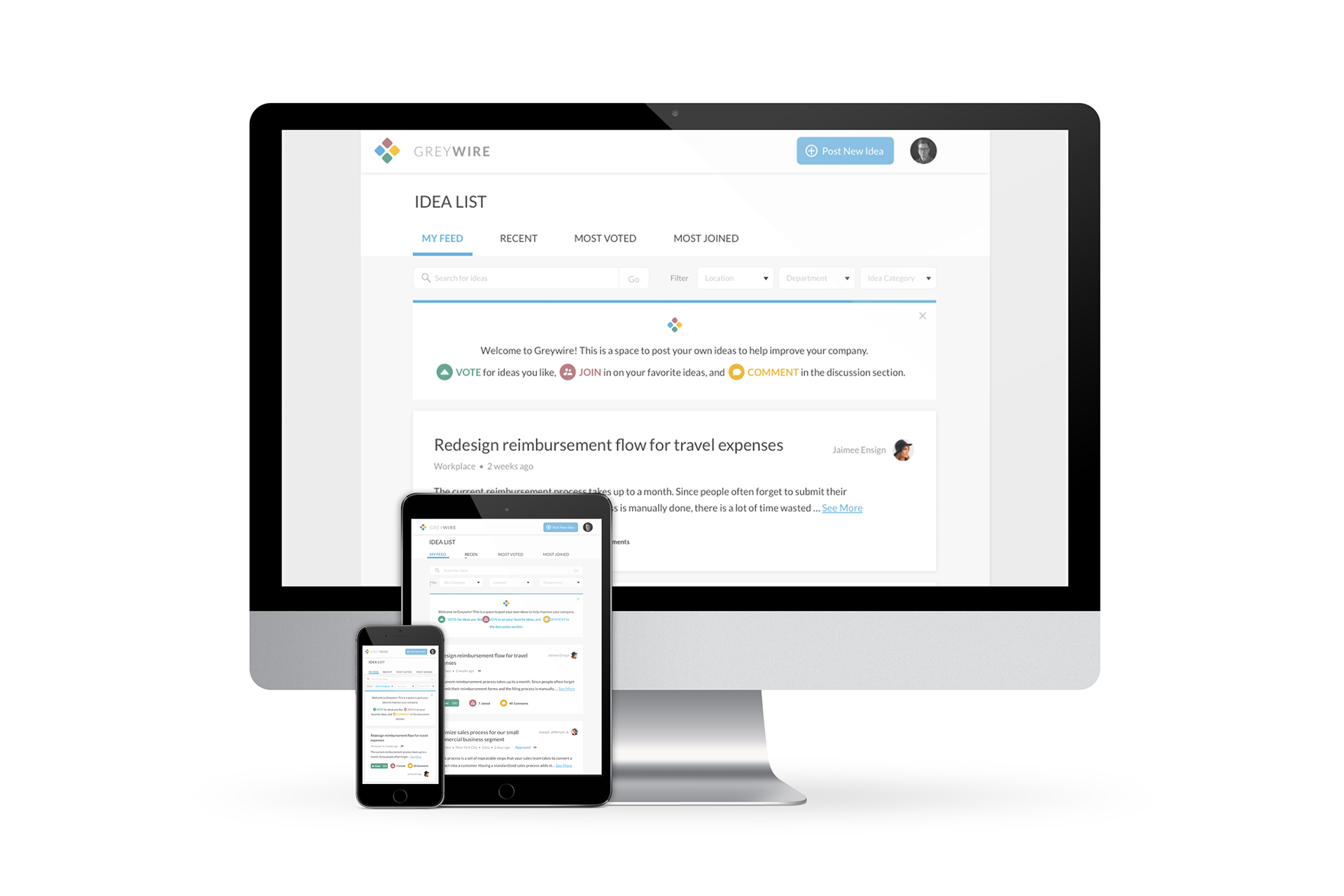 GreyWire is an early stage startup that is in the process of developing an idea management platform to increase innovation in corporate companies. By providing an integrated and easy to use application, they intend to facilitate company innovation through participation of employee generated ideas. Their mission is to help companies innovate by tapping into the ideas of their employees and to provide employees with a place to voice and discuss these ideas. I worked with five other researchers and designers to develop this product.